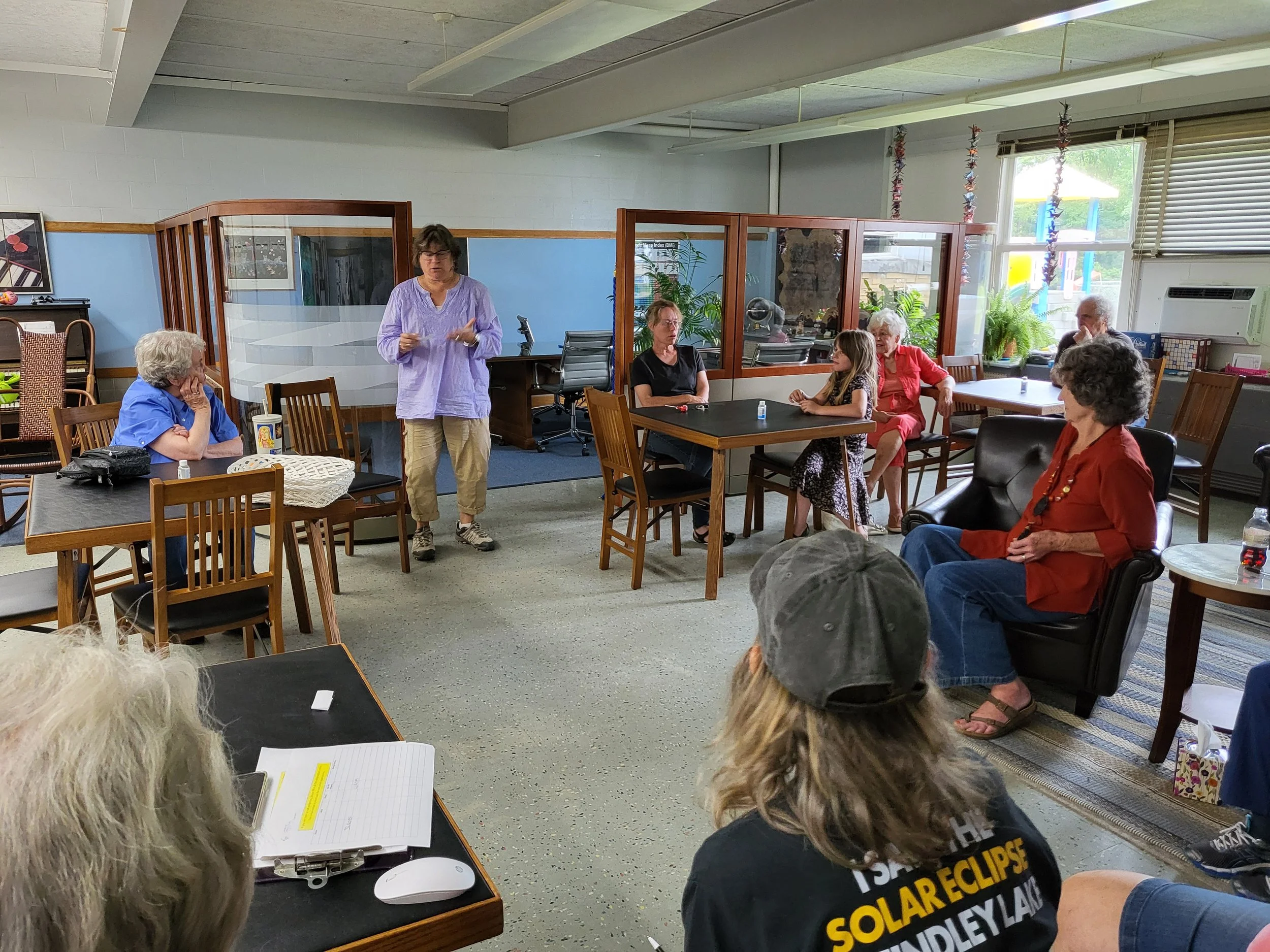 We soaked in a stellar program that was filled with cosmic insights with Mike Lambert sharing what to expect, delving into the eclipse’s history, what cosmic wonders to anticipate and the art of safely basking in its glory. Lin Baylis also gave insight into how to capture this celestial spectacle through the lens of photography. Thank you Mike and Lin for your excellent guidance!
